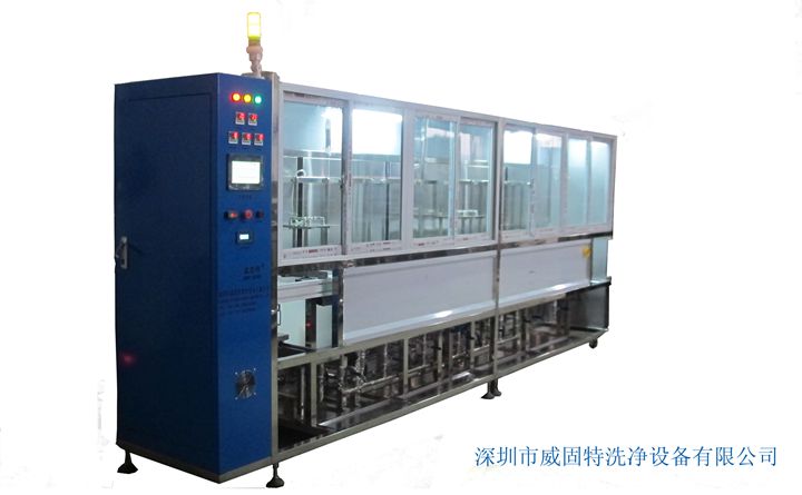 VGT-1409FT為離心甩干式光學(xué)超聲波清洗系統(tǒng),共有14個(gè)功能槽,配置有循環(huán)過濾系統(tǒng)、有機(jī)溶劑蒸餾回收系統(tǒng)、自動(dòng)恒溫系統(tǒng)、拋動(dòng)系統(tǒng)、超聲波清洗系統(tǒng)、抽風(fēng)系統(tǒng)、降噪系統(tǒng)、FFU系統(tǒng)、純水系統(tǒng)、離心甩干系統(tǒng)等。設(shè)備采用環(huán)保型有機(jī)溶劑洗滌、水溶劑洗滌、純水漂洗,為環(huán)保型清洗機(jī);